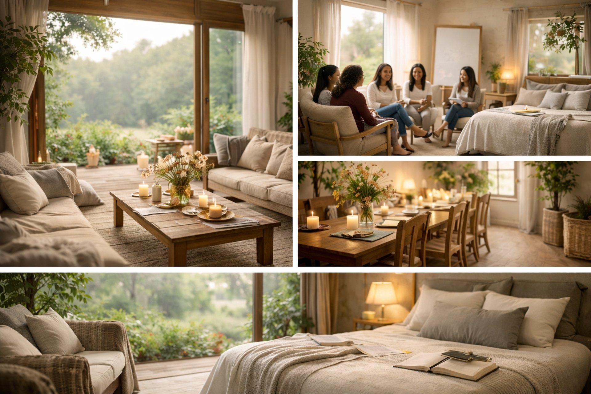 Our retreats are intentionally designed spaces where women can step away from daily demands and enter a rhythm of rest, reflection, and reconnection with God. These gatherings balance moments of stillness with meaningful engagement—times of prayer, guided reflection, teaching sessions, shared meals, and restorative rest. Whether in quiet solitude or communal spaces, every element is shaped to support spiritual grounding and emotional renewal.